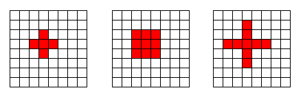 Figure 1. Some typical (local) neighborhoods for (different) CA's.