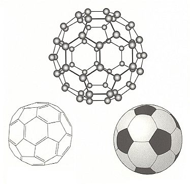 Top : The structure of the sixty-carbon-atom cluster, called buckminsterfullerene.