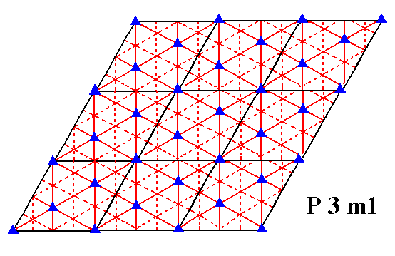 The total symmetry content of the Plane Group P3m1 is depicted in the next Figure.
