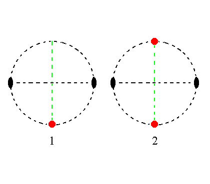 Figure 12. (1). The holohedric Monoclinic Basic Pinacoid. (2). The hemimorphous Monoclinic Basic Pinacoid. This Form consists of two faces parallel to the clino and ortho axes. Its lowered symmetry is indicated by the coloring. The red lines indicate crystallographic directions. |