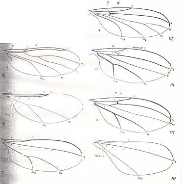 Figure above : Wing-venation of a number of representatives of the family Cecidomyiidae ( = Itonididae)