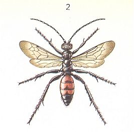 Speaking now of the digger wasps Sphecoidea, we must first of all mention the hunting of representatives of the family Ampulicidae after cockroaches. See next Figure.