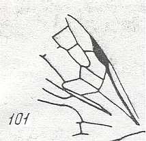 And further, we must realize that, in following the prototype proposed by Comstock and Needham, although we can indeed identify in all insects all the principal veins insofar still present (C, SC, R, RS, M, Cu, and A), experience shows that we cannot expect that we can, always, in all insects, precisely identify all the main branches of these principal veins (for instance the four branches of the Radial Sector, R2, R3, R4, R5, or the four branches of the Media, M1, M2, M3, M4) named by Comstock and Needham in their prototype. We may identify, for example a two-branched Radial Sector, but we generally cannot retrieve whether these branches are R2 and R3, or R4 and R5, or R2 and R5, etc. So in our effords to identify the veins in fossil and recent insects on the basis of the prototype of Comstock an Needham we must be content with identifying the mentioned venational chief systems (C, SC, R, RS, M, Cu, and A), and sometimes with being able to distinguish between, for instance, "MA" (anterior part of medial system) and "MP" (posterial part of medial system), as Sharov has done in his prototype . So in trying to determine the degree of reduction or proliferation of veins in some given wing-venation with respect to the prototype of Comstock and Needham, all we can do is to count the branches of the principal veins that are actually present, without naming them individually.