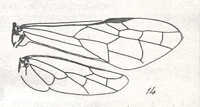 Wings of Syrista Knw., Family Cephidae. Recent. Suborder Symphyta. ( Figure 122 of previous previous document) (scrolling may be necessary) |