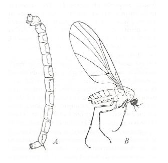 B -- Trichomyia urbica CURTIS (Psychodidae), side view.