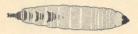 The legless larvae of sand-flies are distinguished by having long, isolated hairs, with a few especially long ones posteriorly.