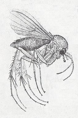 Figure 1 : Mycetophila (Fungivora) fungorum DEG. (Fungivoridae), 4-6 mm.