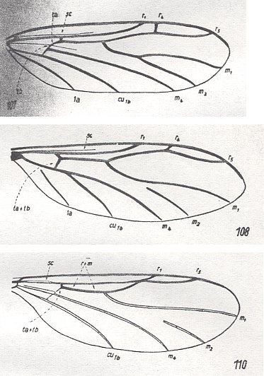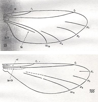 Figures of complete wings of representatives of the different families are added by me, when necessary, and taken from HENNIG, 1954.