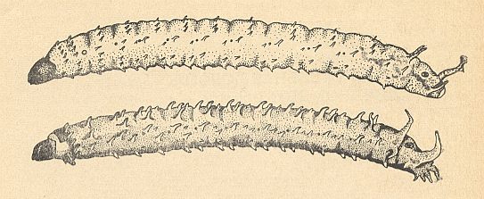 The group of larvae representing the third type of nutritive regime includes larvae that feed on fungi. This group evermore grows in correspondence with the accumulation of known facts principally at the expense of larvae which were considered to be saprophags. Such are the majority of the larvae of gall midges (Cecidomyiidae) which are until now placed by many authors in the category of saprophagous larvae. In fact they are mycetophagous larvae feeding on threads of fungi. The larvae of certain species of Sciara MEIG., which develop in wood invested with dry rot, feed on fungi of this rot, and not on wood.