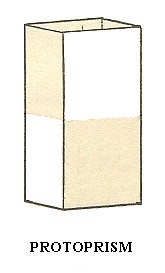 A copy of the parallel face pair (generated as described) is turned 900 and then directly reflected with respect to the mentioned equatorial mirror plane. Because the faces are vertical this reflection will not affect them, and we now already possess the prism.