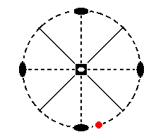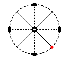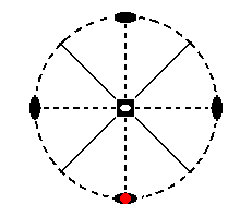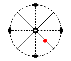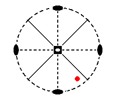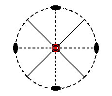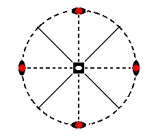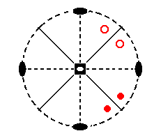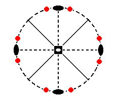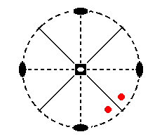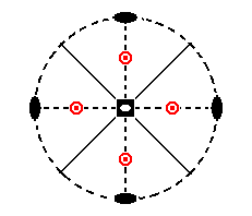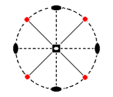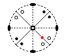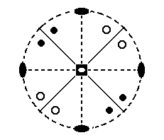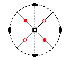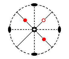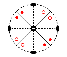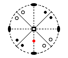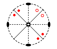 Figure 8b. A configuration of symmetrical motifs according to a 4-fold roto-inversion axis.