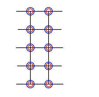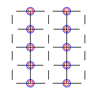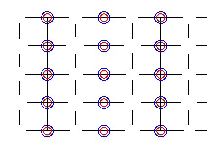 As has been said the open spaces we see in Figure 31, resulting from the shifts, cannot be lattice points, because all lattice points must be equivalent. So the final pattern must look like this (it is of course fully equivalent with the pattern we had already obtained (Figure 28)) :