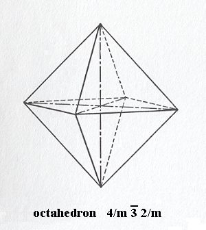 The geometric solid taken (according to the above established criteria) to represent the stereometric basic form (promorph) of all the crystals of this Class is the Regular Octahedron (Figure 3).