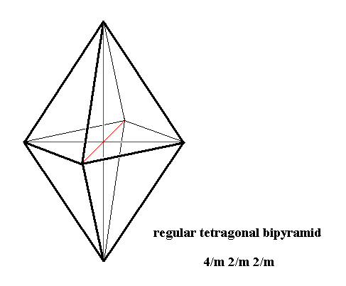 The tetragonal prism has (here as a geometric solid, not as a crystallographic Form) six faces, while the tetragonal bipyramid, also expressing 4/m 2/m 2/m, has eight faces :