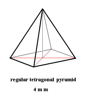 The geometric solid taken (according to the above established criteria) to represent the stereometric basic form (promorph) of all the crystals of this Class is the Tetragonal Bipyramid (Figure 8).