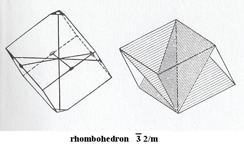 Figure 7. Rhombohedron, Stereometric Basic Form of the (single) crystals of the Ditrigonal_scalenohedric Class of the Hexagonal Crystal System.