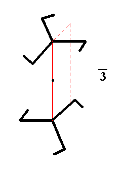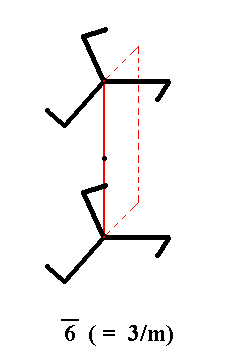Figure 14a. Diagrammatic representation of the 6-fold rotoinversion symmetry of the gyroid bipyramid of Figure 14. This symmetry is identical to 3/m symmetry, which means a 3-fold rotation axis perpendicular to a mirror plane.