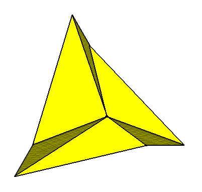 Figure 9. Slightly oblique top view of a trigonal (3-fold) gyroid pyramid. The final geometric solid to be constructed, the Trigonal Gyroid Twisted Apical Bipyramid, consists of two such pyramids, connected to each other by their tips and rotated 600 with respect to each other.