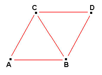 In discrete space all imaginary straight lines, geometrically connecting two real points (such as the line AD) are, as to their length, greater than 1. And only imaginary straight lines can be irrational (Petronievics, 1904, p. 274), whereas the real straight lines can originally be taken only as rational straight lines [If we take some irrational straight line segment as a basis of comparison, then the real straight lines will become irrational, but we do not do this because the real lines form a natural object to compare things with. In discrete space irrational straight lines are imaginary and therefore not real. In continuous space, on the other hand, the irrational straight lines are real (as well as the rational ones), but (in the limit) not distinct from rational straight lines].