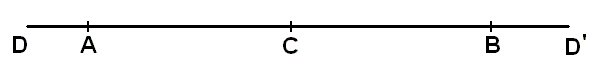 So every straight line is, in absolutely continuous space, real because every line may be thought of as consisting of points that immediately touch one another so that there is also no distinction between real and imaginary lines [if this was also the case in discrete space, then also there this distinction would not exist. In discrete space the points do not touch one another immediately, the touching is mediated by negation-acts, but the latter are not themselves points, so between any two consecutive and adjacent points there is no other point, and in that sense these points do touch one another. In the above Figure it is the line AD in which the two consecutive points of that line do not touch, that is, its two consecutive points, A and D, are at a distance from each other that is greater than the unit distance, but is not a multiple of it. On the other hand, of the line AB its two consecutive points, A and B, do touch each other, meaning that they lie at unit distance from one another.].