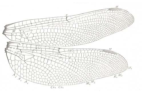 Figure 6 : Wings of Myrmeleon, Family Myrmeleonidae, Order Neuroptera-Planipennia. A species from Katihar, former British India. Recent. (After COMSTOCK, 1918.)