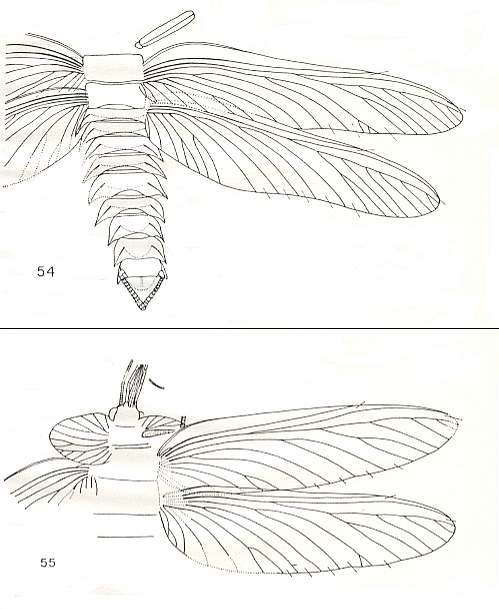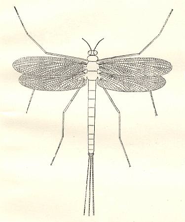 Figure 5 : The permian may-fly Protereisma permianum Sell. Family Protereismatidae, Order Ephemeroptera [= Plectoptera = Agnatha]. Reconstruction by CARPENTER. Lower Permian of Kansas (USA).