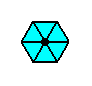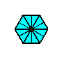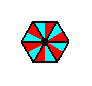 Figure 14c. The composed motif (enlarged) from the P6mm pattern of the previous Figure at the point R . It consists of twelve true motif units (red and blue), representing group elements. The difference in color should (here) not be interpreted as representing asymmetry.