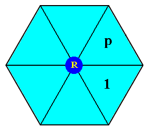 A generator element p , resulting from a 600 anticlockwise rotation of the initial motif unit about the point R (See next Figure).