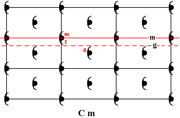 The total symmetry content of the Plane Group Cm is shown in the next Figure.