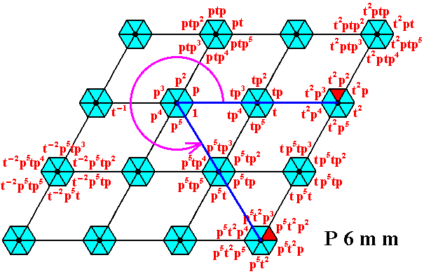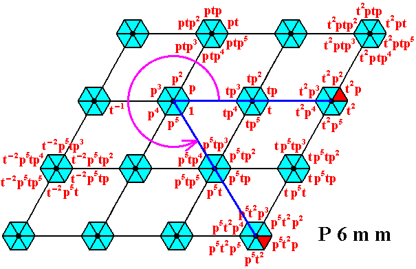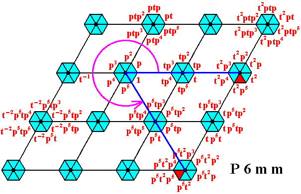 Figure 16. Generation of the group P6mm by the generators p and t . See also next Figures.
