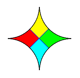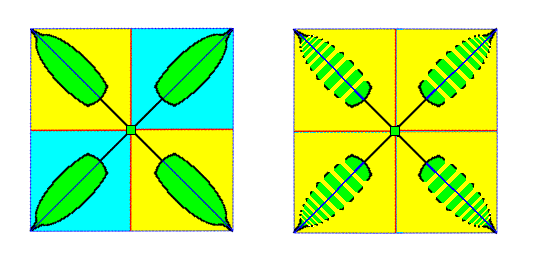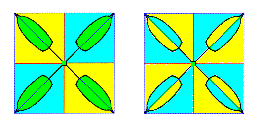 Figure 7. Diagram (containing two images) of an asexual four-fold off-shoot of a dicotyledone plant. It is seen from above, i.e. the direction of view is parallel to the main axis of the off-shoot. The images in the the Figure in fact depict a projection of the off-shoot onto a plane perpendicular to the main axis.