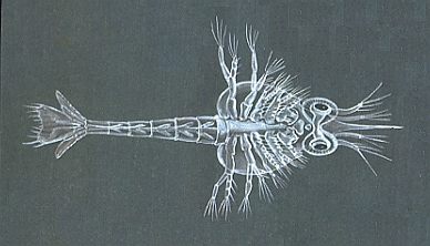 In the next Figure we depict a larva of a shrimp. Although such a larva is not yet a sexually mature biont it has already reached the tectological structure of the mature form and is as such a actual biont. It will tectologically not develop any further.